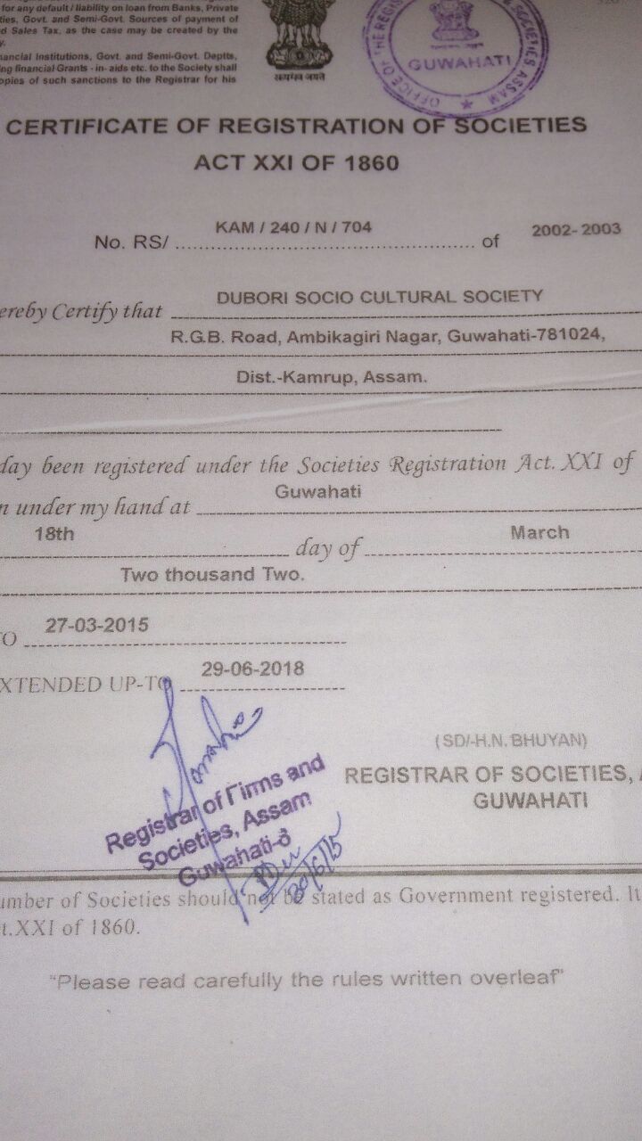 Certificate Of Registration Of Societies