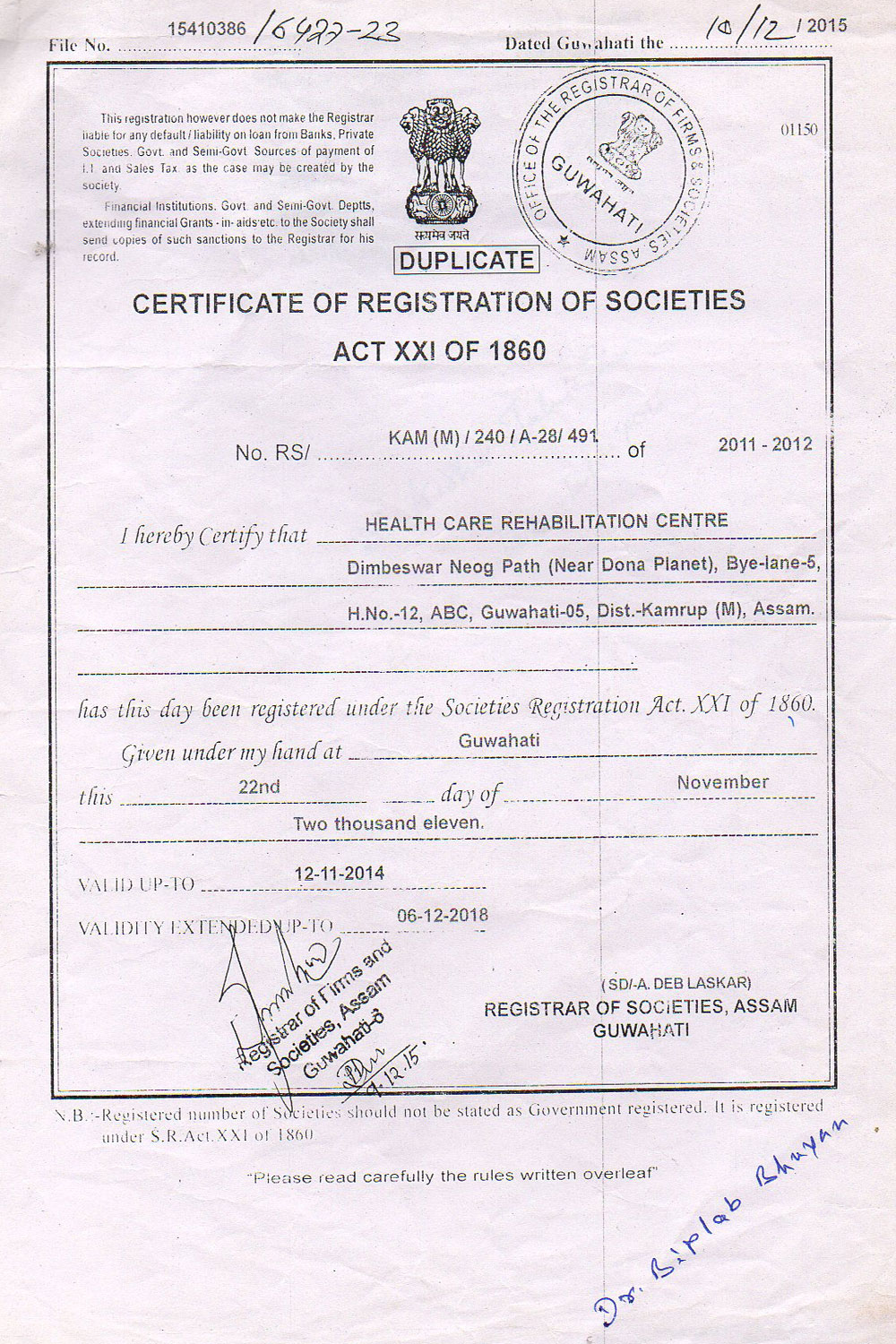 Certificate Of Registration Of Societies